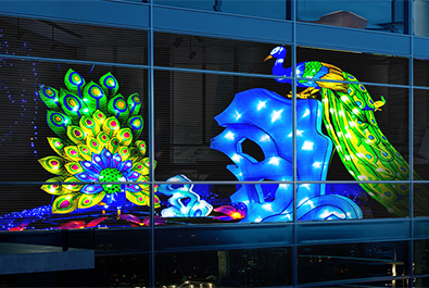 LED貼膜屏是指LED顯示屏具有像玻璃一樣透射光的特性,它的實(shí)現(xiàn)原理是對燈條屏幕進(jìn)行微創(chuàng)新,并改進(jìn)了目標(biāo)制造工藝,燈珠包裝和控制系統(tǒng),并且空心設(shè)計結(jié)構(gòu)減少了結(jié)構(gòu)組件對視線的阻礙,以最大化透視效果。